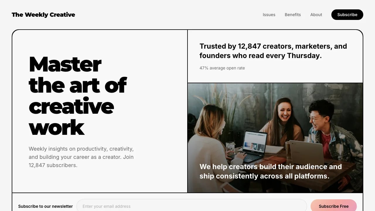 Inkwell - Newsletter Landing Page for Creators TemplateEditorial bento-grid newsletter page